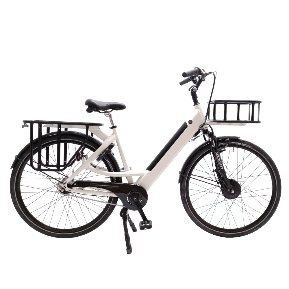 E-Delivery R7 Wit 50cm met oa; Bafang voorwiel drive, verende vork, Shimano 7 speed + remnaaf , voor rollerbrake , 36v/14,5 ah (520 wh) accu (Samsung cells/ 80-120 km) ,display met 5 standen, dubbel achterlicht en voorlicht, verstelbaar stuur, Alu frame, Axa defender, Selle comfort zadel, Inclusief voordrager. MADE IN HOLLAND! WEER LEVERBAAR MEDIO JUNI!